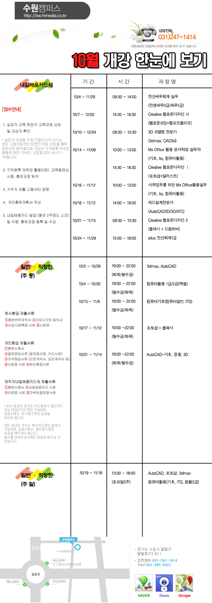 10월 개강일정한눈에 보기